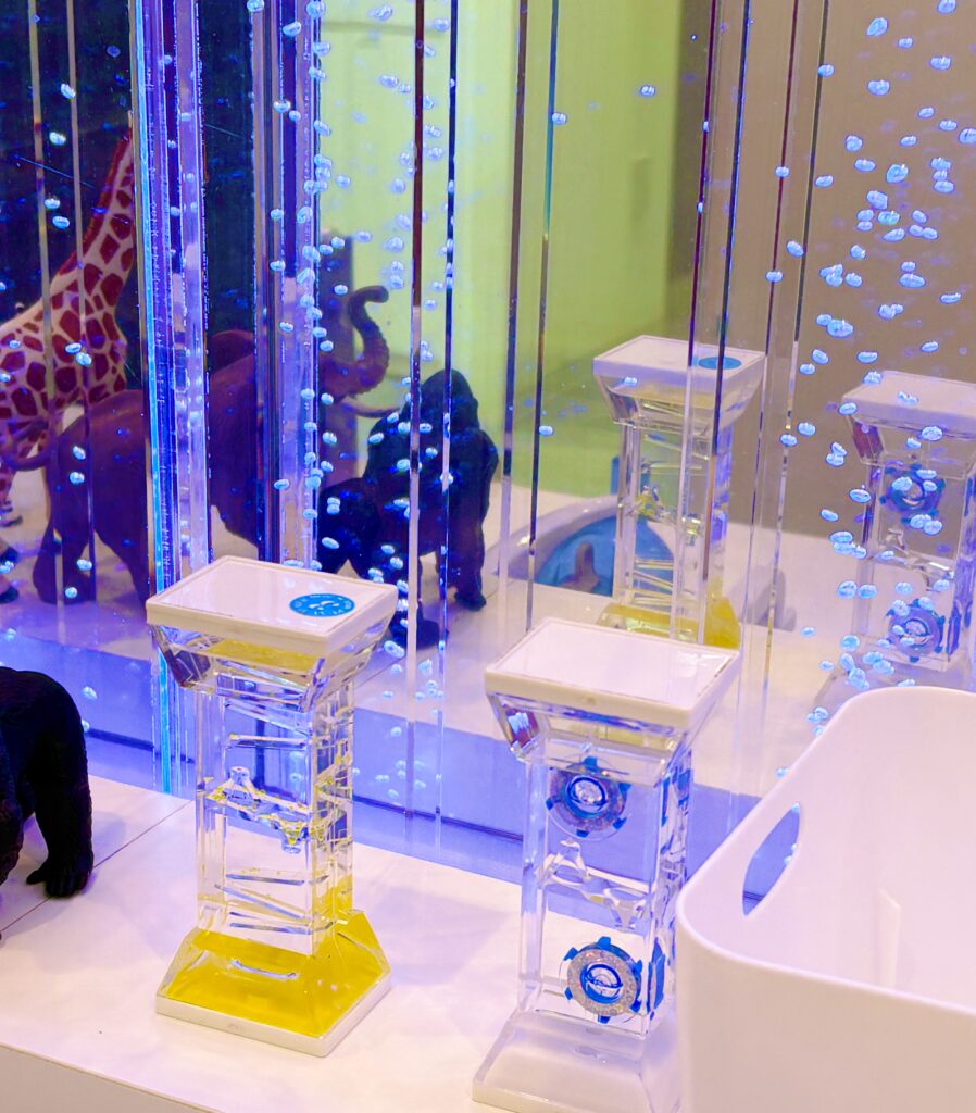 バブルチューブは単なる自宅や店舗のインテリアだけではなく、スヌーズレンにおいても三種の神器の1つとして重宝されています。