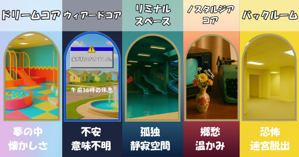 ドリームコア夢、懐かしさ安心感、少しの不気味さ基準