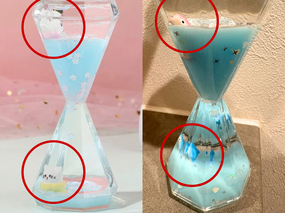 大きなキズがついていたり、液体が染み出していたり、浮かぶはずの人形が沈んでいたり。