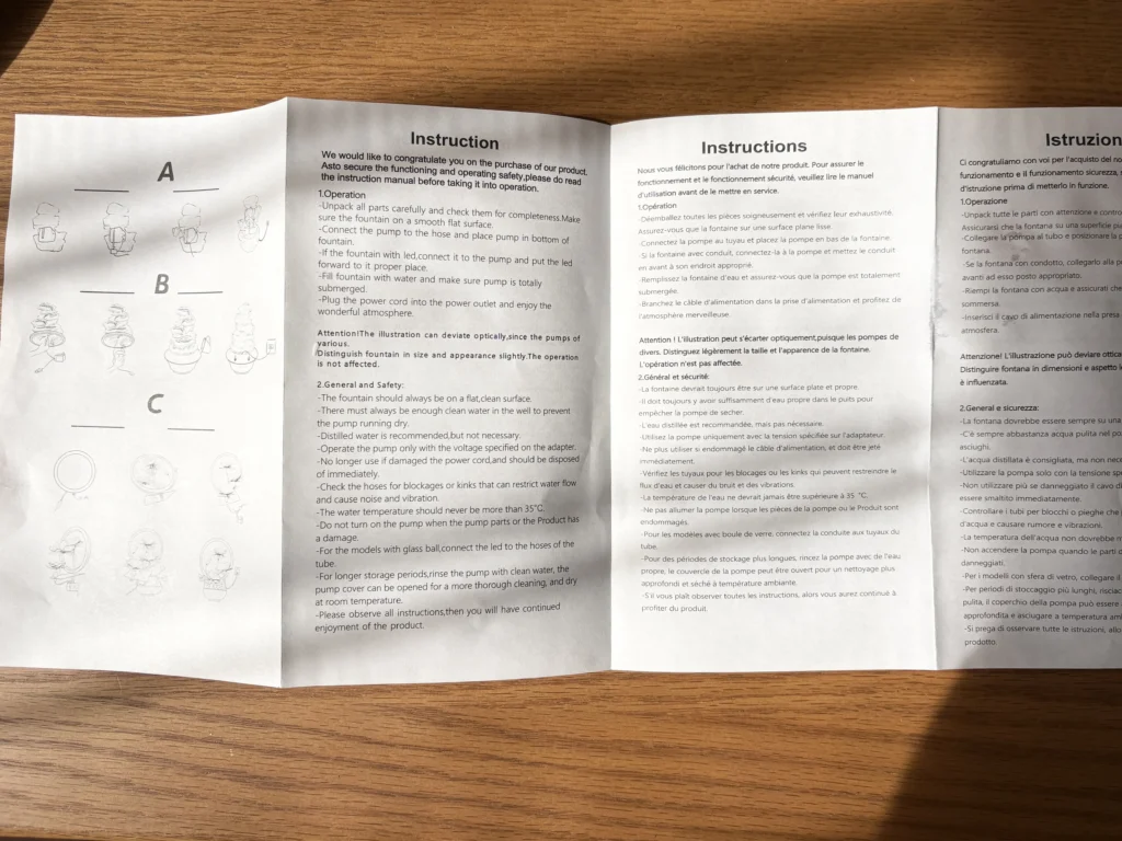 卓上噴水の組み立て方と説明書の要約